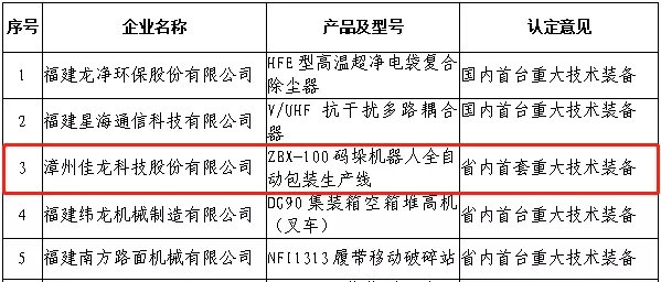 2019年福建省首臺(tái)(套)重大技術(shù)裝備認(rèn)定名單